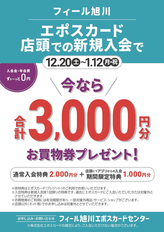 ※入会特典は新規入会時1回限りの特典です。過去にエポスカードにご入会いただいた方は対象外とさせていただきます。